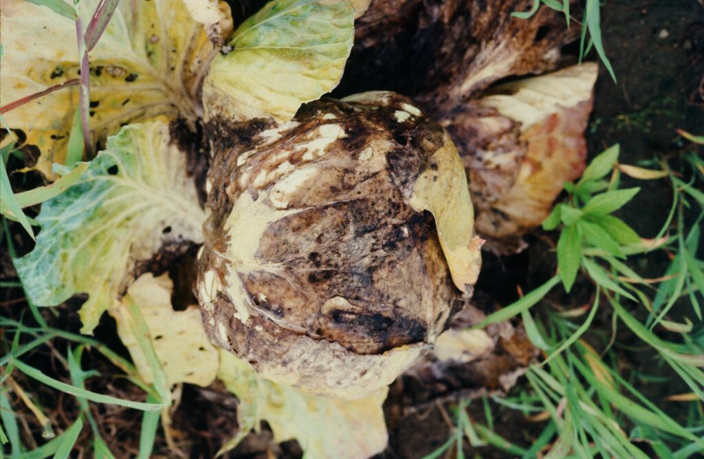 露地栽培においては、高温時の豪雨後に、細菌や疫病菌による葉根菜類の腐敗性の病害が発生しやすい。銅剤などを降雨前に散布して予防したい。