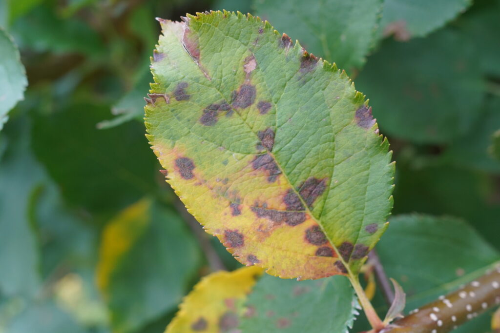 2025年は平年よりも早い梅雨入り・梅雨明け、また夏期の高温によって病害の目立った発生はなかった。一方、オウトウ灰星病、カンキツ黒点病、セイヨウナシ褐色斑点病、オウトウ褐色せん孔病、リンゴ褐斑病およびカキ炭疽(たんそ)病では、巡回調査で発生量が多かったこと、また降雨の影響を警戒して注意報が発出された。発生園では、これら病害の病原菌密度が高くなっている可能性があるが、薬剤の効果を十分に発揮させるためには圃場(ほじょう)衛生に努め病原菌密度を低く維持することが重要である。ここでは果実生産に影響を与え例年注意が必要な病害として、リンゴ褐斑病、ナシ黒星病、ブドウ晩腐病について紹介する。